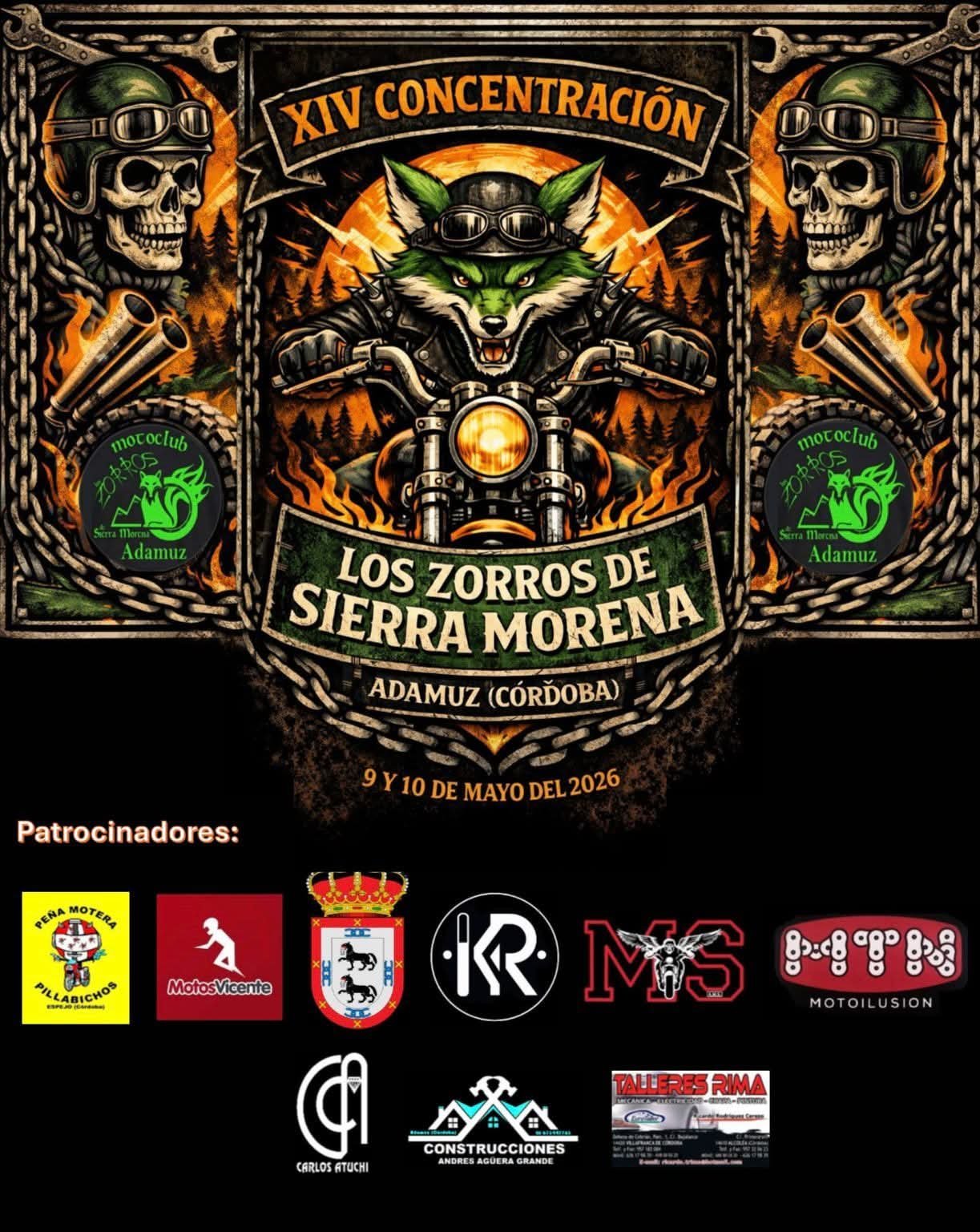 Concentraciones Próximos eventosXXXV CONCENTRACION MOTOTURISTICA RUTA N-63406/03/2026 - 08/03/2026ConcentracionesMondoñedo (Lugo)ORGANIZA MOTO CLUB RUTA N-634COPA DE ESPAÑA DE MOTOTURISMO20/03/2026 - 21/03/2026ConcentracionesBollullos Par del Condado (Huelva)ORGANIZA RFME41 CONCENTRACION INVERNAL VILLA DE ROTA20/03/2026 - 22/03/2026ConcentracionesRota (Cádiz)ORGANIZA MOTO CLUB LOS CAMALEONESIV CONCENTRACION EN MONTIJO20/03/2026 - 22/03/2026ConcentracionesMontijo (Barcelona)ORGANIZA KINS OF BIRRAFRIAXV CONCENTRACION INVERNAL "APRETAYE EL CORNO"27/03/2026 - 29/03/2026ConcentracionesNavia (Asturias)ORGANIZA MOTO CLUB APRETAYE EL CORNO Y CELEBRA SU 20 ANIVERSARIO DE FUNDACIONV CONCENTRACION MOTERA BENEFICA 5P27/03/2026 - 29/03/2026ConcentracionesQuel (Rioja, La)ORGANIZA ASOCIACION DE APOYO E INVESTIGACION DEL SINDROME 5PCONCENTRACION MOTOCOCIDO 202610/04/2026 - 12/04/2026ConcentracionesLalín (Navarra)ORGANIZA ASOCIACION DE GRUPOS MOTEROS GALLEGOSXIV CONCENTRACION LOS ZORROS DE SIERRA MORENA09/05/2026 - 10/05/2026ConcentracionesAdamuz (Córdoba)ORGANIZA MOTO CLUB LOS ZORROSVII INTERNACIONAL MADONNA DE LOS CENTAUROS14/05/2026 - 17/05/2026ConcentracionesBañeza (León)CONCENTRACION MADONNINAI CONCENTRACION ZAMORA SOBRE RUEDAS22/05/2026 - 24/05/2026ConcentracionesZamora (Zamora)ORGANIZA DIPUTACION DE ZAMORAMOTORBEACH VINUESA09/07/2026 - 12/07/2026ConcentracionesVinuesa (Soria)ORGANIZA MOTORBEACHXXXII CONCENTRACION INTERNACIONAL LAGO DE SANABRIA10/07/2026 - 12/07/2026ConcentracionesZamora (Zamora)EN EL PUENTE DE SANABRIA ZAMORACONCENTRACION MOTO CLUB FARO16/07/2026 - 18/07/2026ConcentracionesFaro (Portugal) (Extranjero)ORGANIZA MOTO CLUB FARO (PORTUGAL)XXXII CONCENTRACION INTERNACIONAL LAGO DE SANABRIA10/07/2026 - 12/07/2026ConcentracionesZamora (Zamora)EN EL PUENTE DE SANABRIA ZAMORA